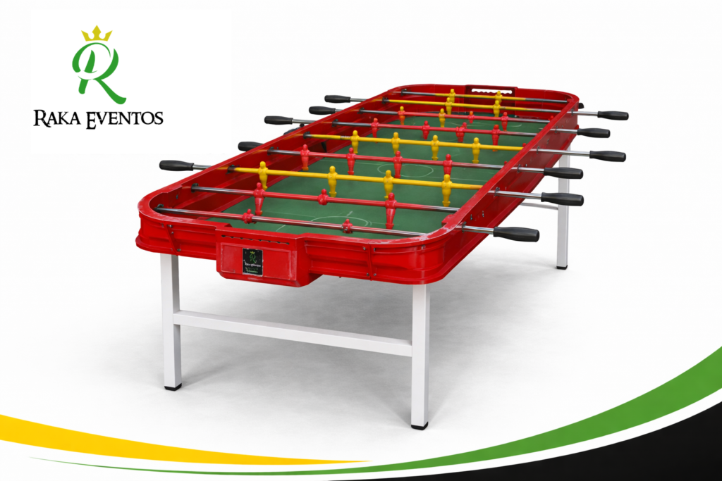 Metegol para 6 jugadores construida en fundición de aluminio, con patas de caño estructural. Chapa con goma antiruido, ideal para divertirse en familia.