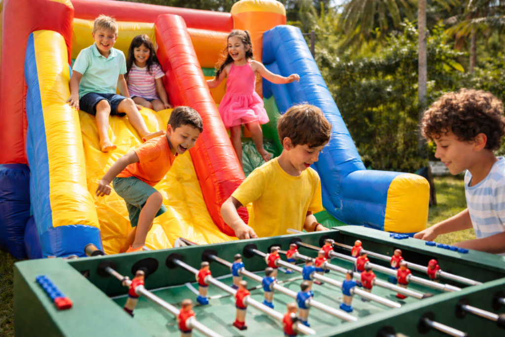 Metegol + Cama elástica o Inflable + Jenga o sapo + Tejo