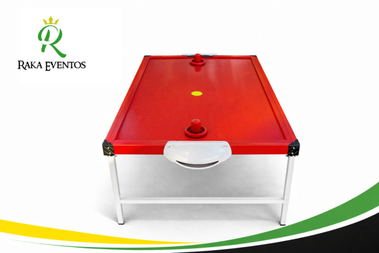 Mesa de aire para 2 jugadores. Cuenta con dos manoplas y un disco. Requiere de energía eléctrica.
